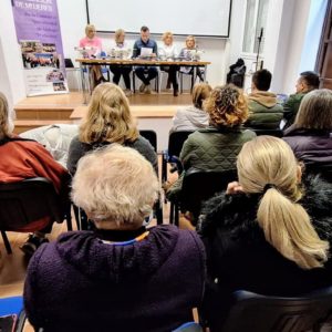 El acto fue inaugurado por el alcalde del Ayuntamiento de San Marcos, José María Molina Ruz. Después tuvo lugar la lectura manifiesto que COAMUR ha redactado con motivo de la conmemoración del 25 de noviembre, Día Internacional para la Eliminación de la Violencia Hacia Las Mujeres. También hubo un espacio para la promoción de la igualdad y la prevención de la violencia de género a través de la producción audiovisual a través de la proyección del cortometraje ‘Escucha Sorora’. Trabajo escrito y codirigido por Mabel Hechevarría Martínez e Inmaculada López Liñán, rodado Cuevas de San Marcos y producido por la Federación de Asociaciones de Mujeres de la Comarca Nororiental de Málaga ‘Podemos’.